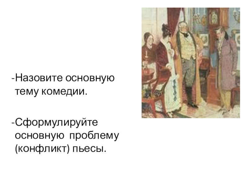 Назовите основную тему комедии.Сформулируйте основную проблему (конфликт) пьесы.