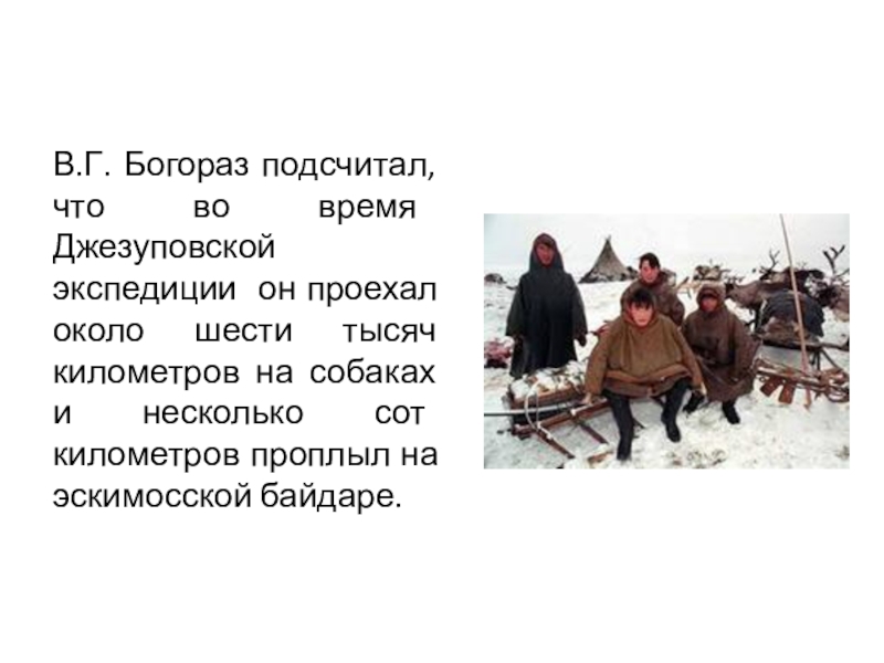 Слайд 9В.Г. Богораз подсчитал, что во время Джезуповской экспедиции он проехал около