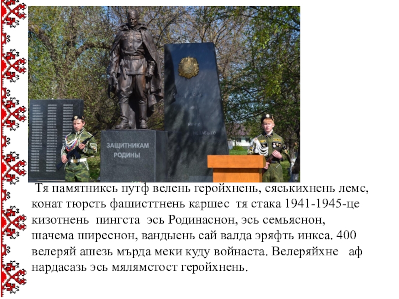 Велеряйхне геройхнень аф нардасазь эсь мялямстост.