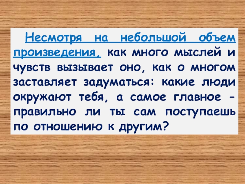 Слайд 18Несмотря на небольшой объем произведения, как много мыслей и чувств вызывает