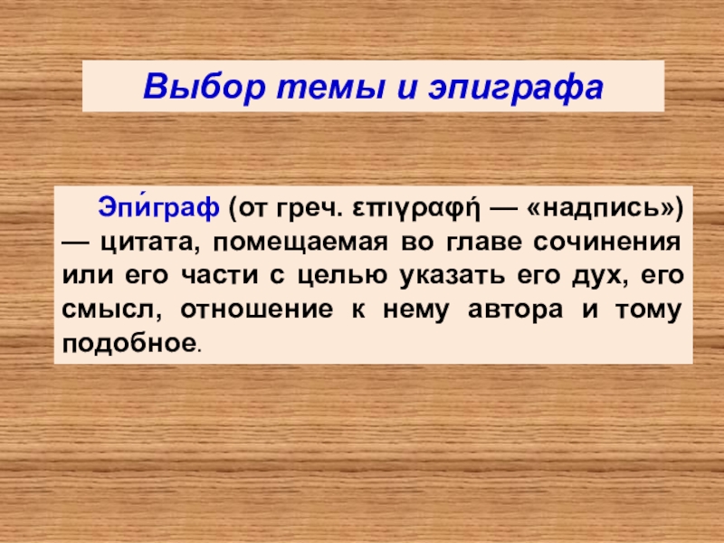 Эпи́граф (от греч. επιγραφή — «надпись») — цитата, помещаемая
