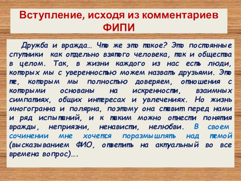 Слайд 10Вступление, исходя из комментариев ФИПИ