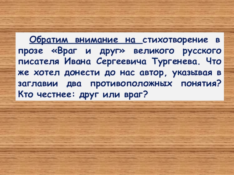 Слайд 15Обратим внимание на стихотворение в прозе «Враг и друг» великого русского