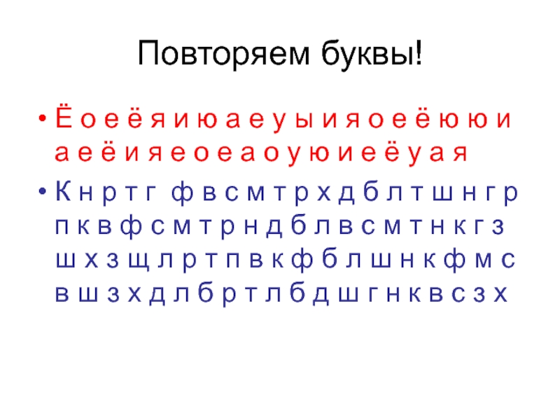 Повторяем буквы!Ё о е ё я и ю а е у ы и я о е ё