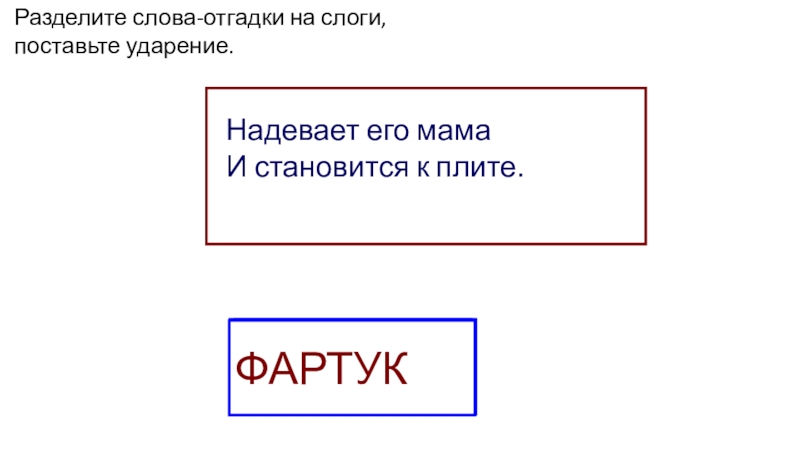 Разделите слова-отгадки на слоги, поставьте ударение.