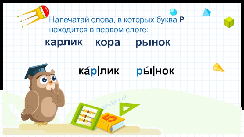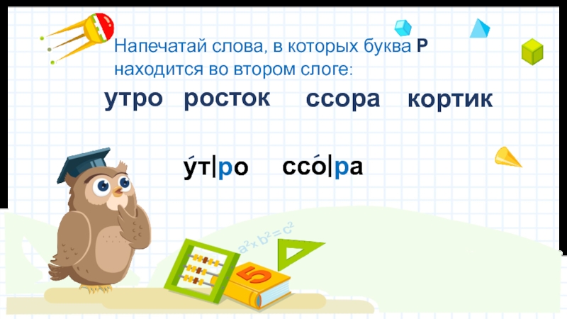 Слайд 3Напечатай слова, в которых буква Р находится в первом слоге: