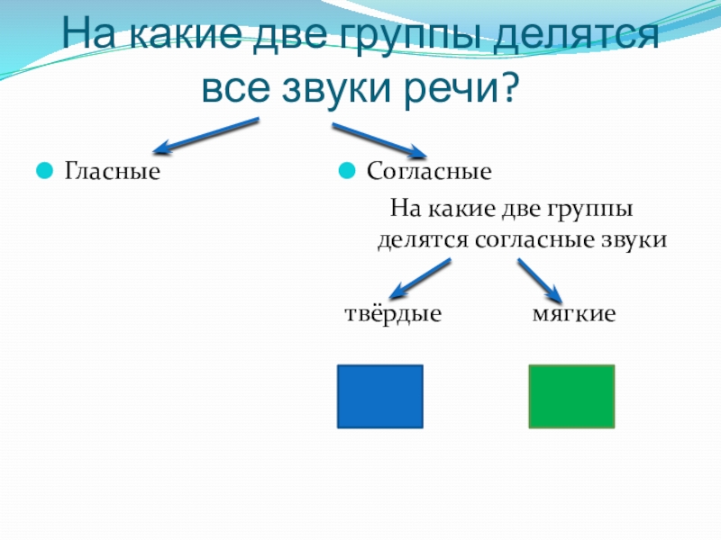 На какие две группы делятся все звуки речи?ГласныеСогласные На какие две группы делятся согласные звукитвёрдые мягкие
