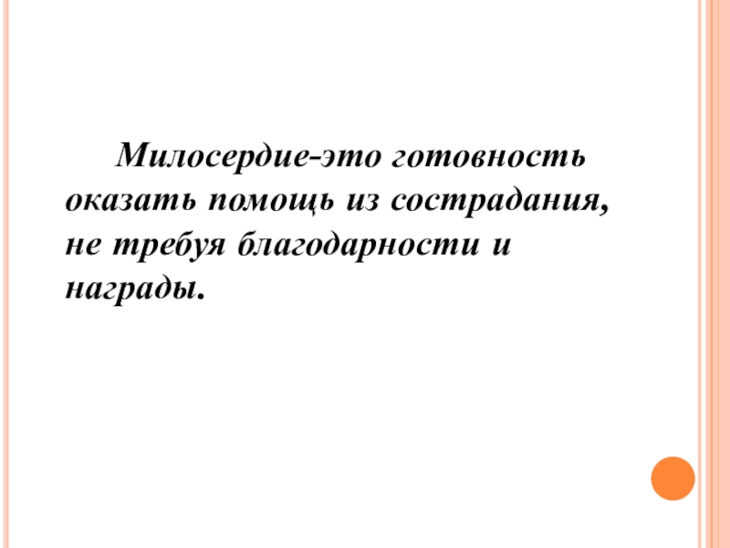 Слайд 11 Милосердие-это готовность оказать помощь из сострадания, не