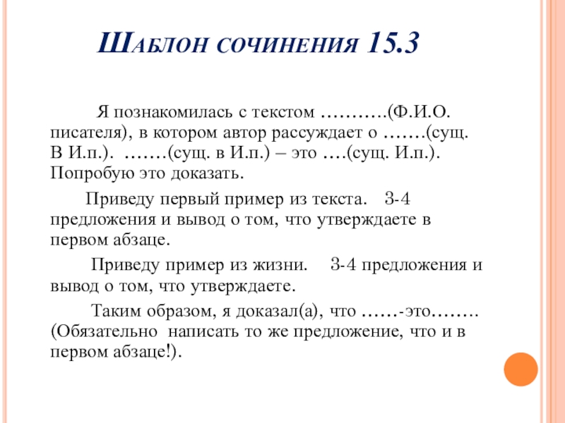 Слайд 16Шаблон сочинения 15.3
