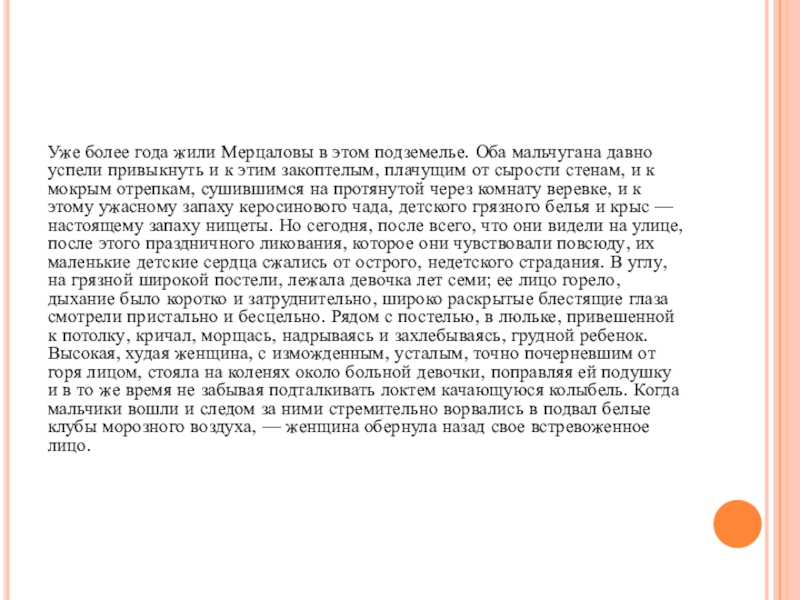 Слайд 3Уже более года жили Мерцаловы в этом подземелье. Оба мальчугана давно