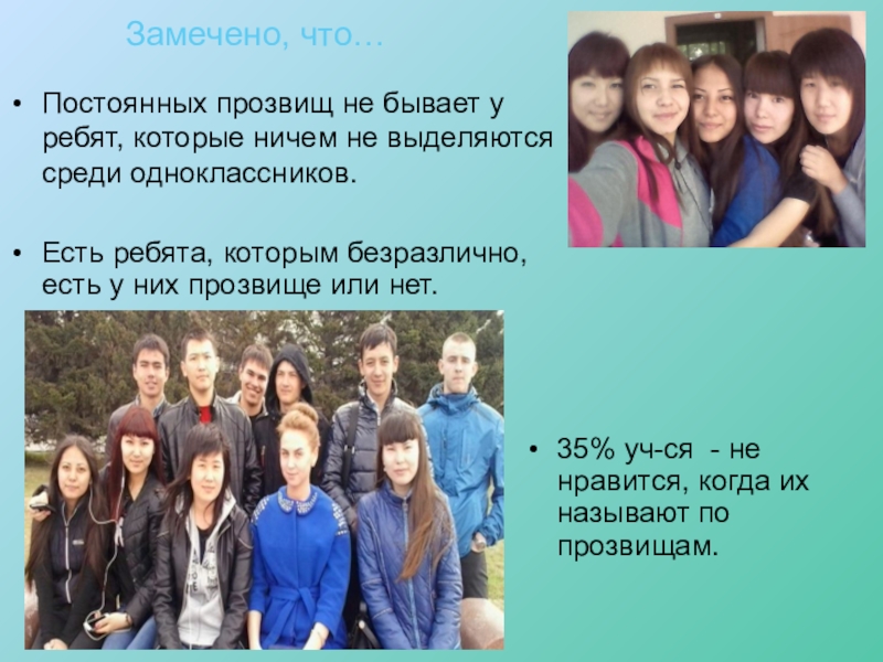 35% уч-ся - не нравится, когда их называют по прозвищам.