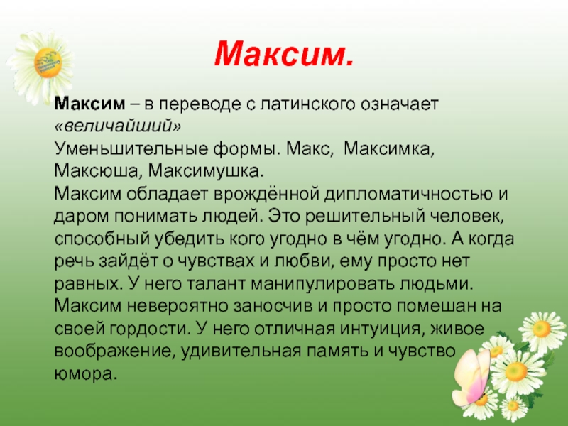 В имени Антонина собраны и жизнерадостность, и добродушие. Но в тоже время у этого имени существует два лица. Как это проявляется? В детстве Антонина проявляет такие качества, как добродушие, приветливость и веселость. Она очень хорошо ловит и усваивает любую информацию, и это помогает Тоне в школьные годы уравновесить свойственные ей игривость и непоседливость .