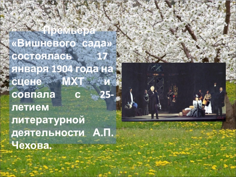 Слайд 5 Премьера «Вишневого сада» состоялась 17 января 1904 года на сцене