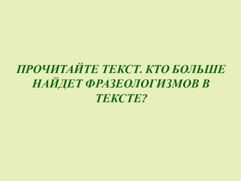 Слайд 19ПРОЧИТАЙТЕ ТЕКСТ. КТО БОЛЬШЕ НАЙДЕТ ФРАЗЕОЛОГИЗМОВ В ТЕКСТЕ?