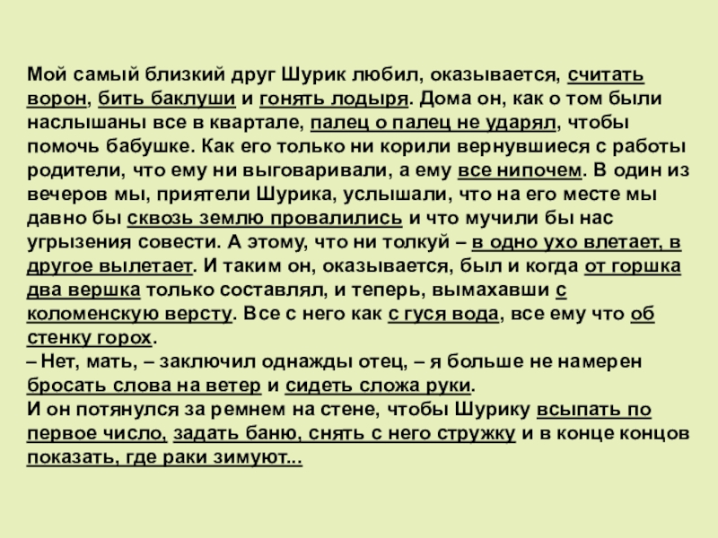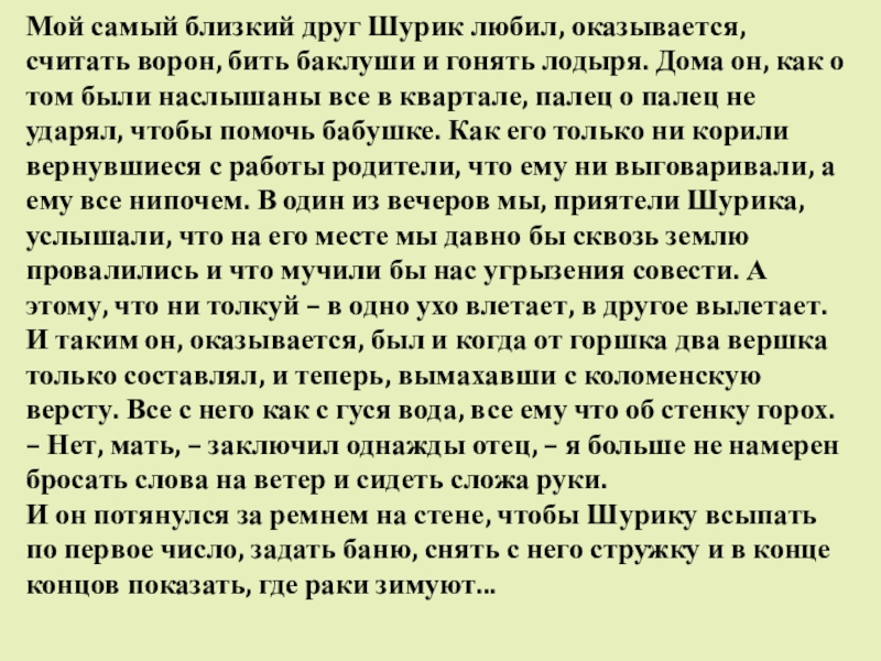 Слайд 20Мой самый близкий друг Шурик любил, оказывается, считать ворон, бить баклуши