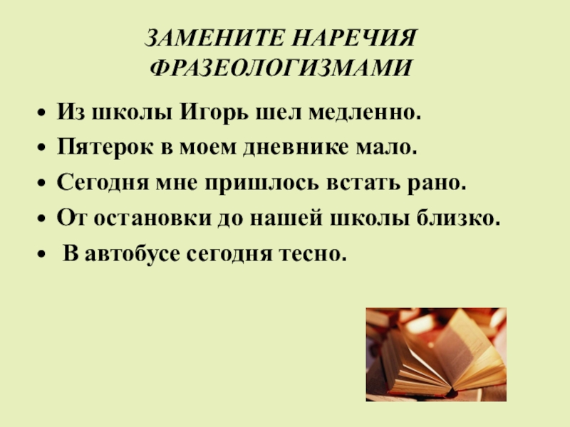 Слайд 22ЗАМЕНИТЕ НАРЕЧИЯ ФРАЗЕОЛОГИЗМАМИ