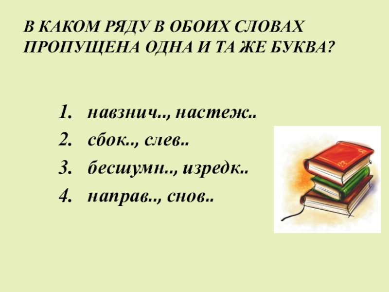 Слайд 18В КАКОМ РЯДУ В ОБОИХ СЛОВАХ ПРОПУЩЕНА ОДНА И ТА ЖЕ