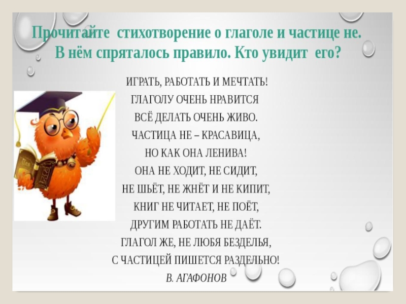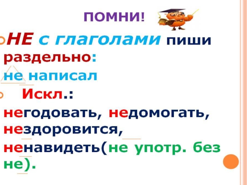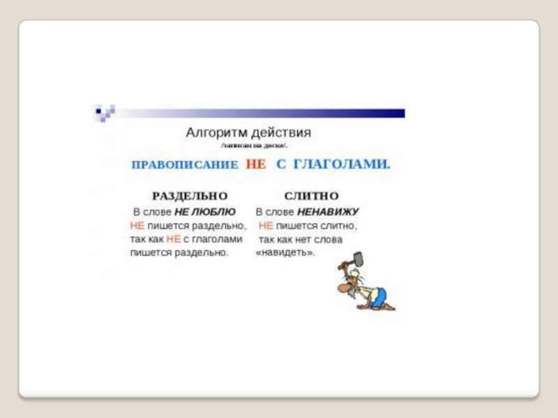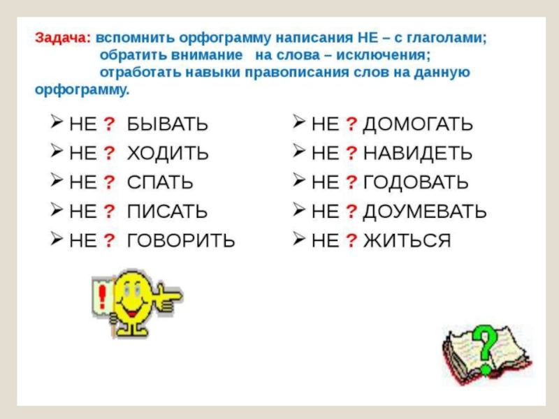 Презентация, доклад по письму на тему Не с глаголами ( 7класс) для учащихся с ОВЗ