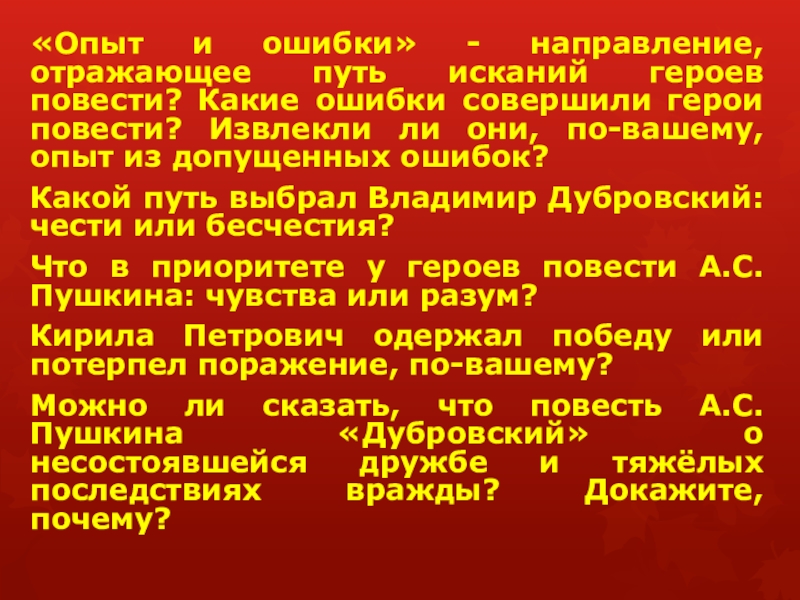 Слайд 23«Опыт и ошибки» - направление, отражающее путь исканий героев повести? Какие