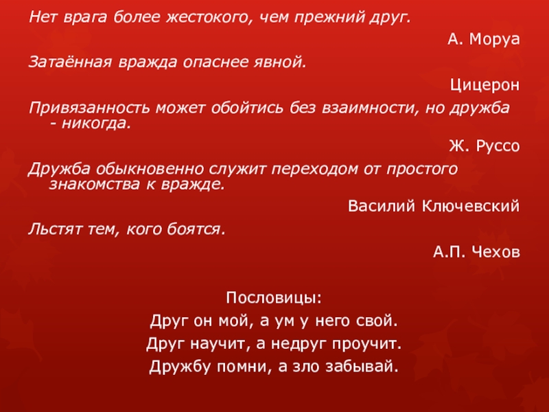 Слайд 21Нет врага более жестокого, чем прежний друг.