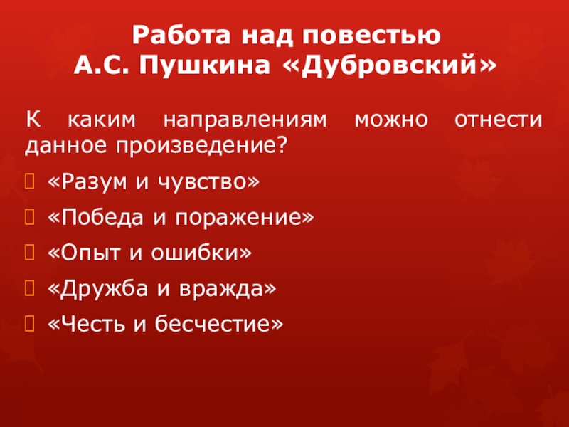 А.С. Пушкина «Дубровский»