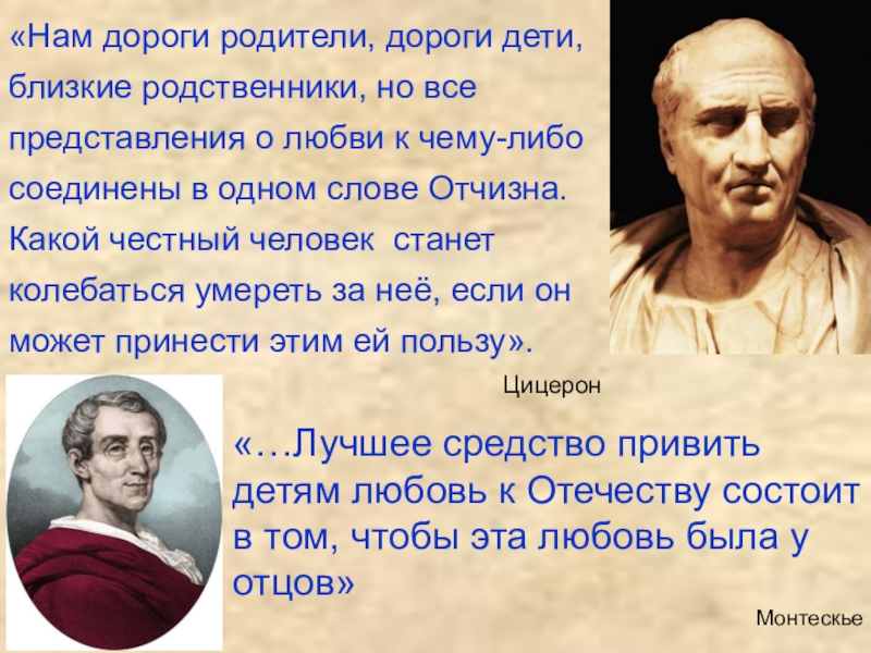 «…Лучшее средство привить детям любовь к Отечеству состоит в том, чтобы эта любовь была у отцов»