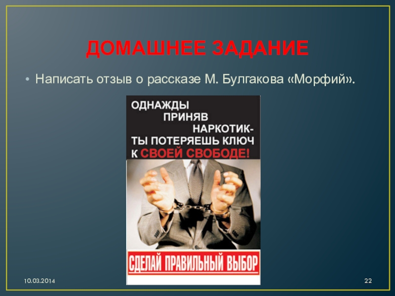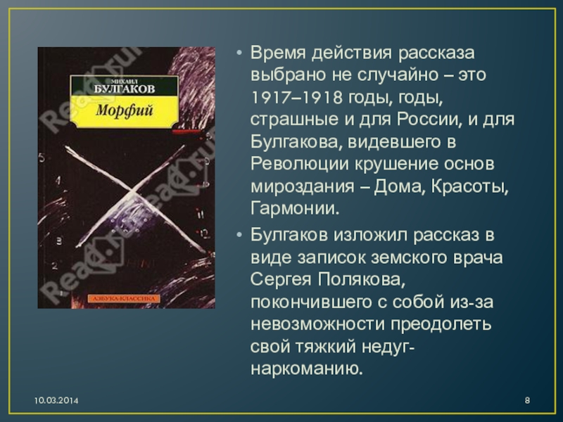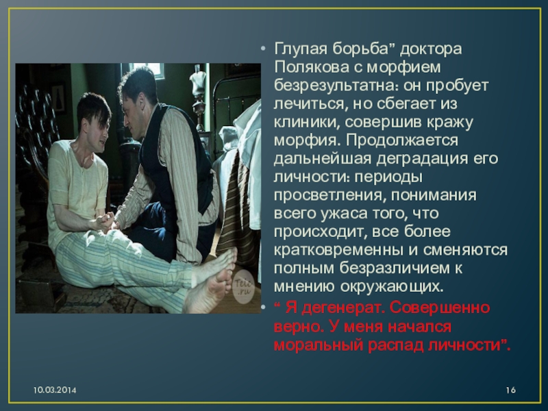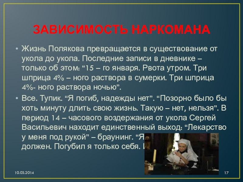 18мая «Смерть от жажды- райская , блаженная смерть по сравнению с жаждой морфия… Смерть медленная овладевает морфинистом…»