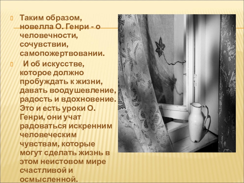 Слайд 14Таким образом, новелла О. Генри - о человечности, сочувствии, самопожертвовании.