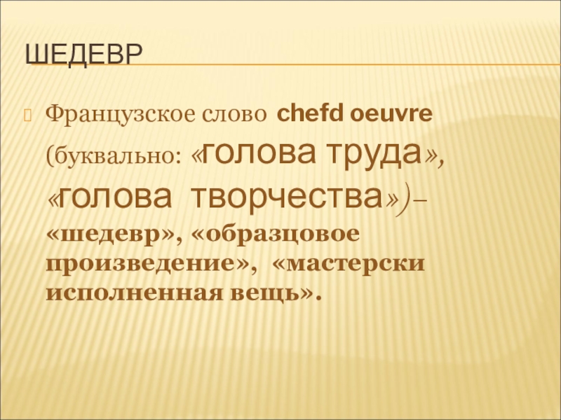 Французское слово chefd oeuvre (буквально: «голова труда», «голова творчества») – «шедевр»,
