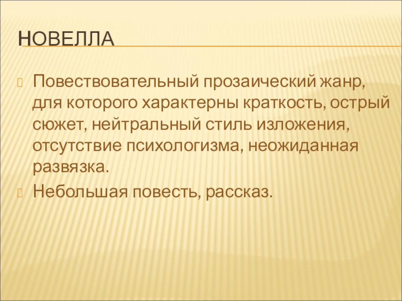 Повествовательный прозаический жанр, для которого характерны краткость, острый сюжет, нейтральный стиль