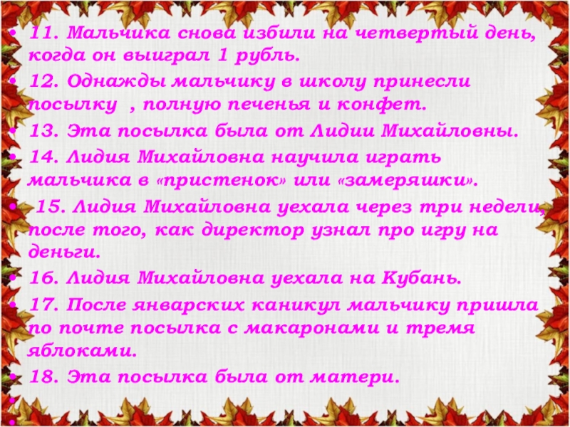 Слайд 4711. Мальчика снова избили на четвертый день, когда он выиграл 1