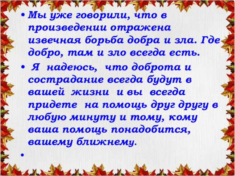 Слайд 60Мы уже говорили, что в произведении отражена извечная борьба добра и