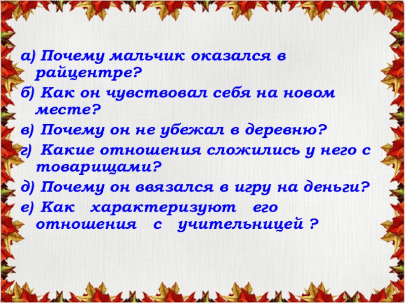 Слайд 50Что поняла о жизни героя учительница и как пыталась помочь мальчику?