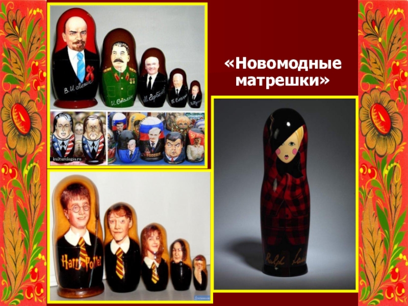 Слайд 11Сегодня можно купить сувенирные матрёшки самого необычного вида – героев русских