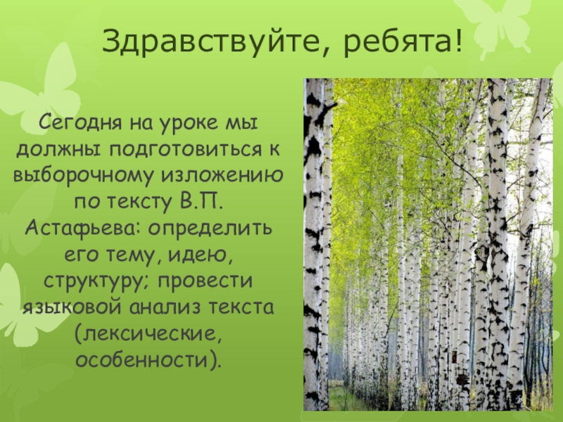 Сегодня на уроке мы должны подготовиться к выборочному изложению по