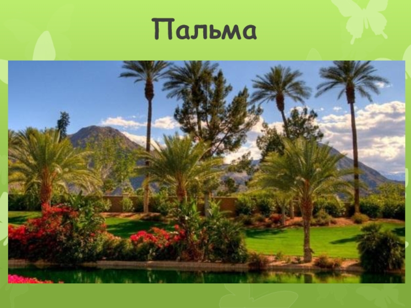Слайд 5В приморском парке росли деревья и кусты, собранные со всех сторон