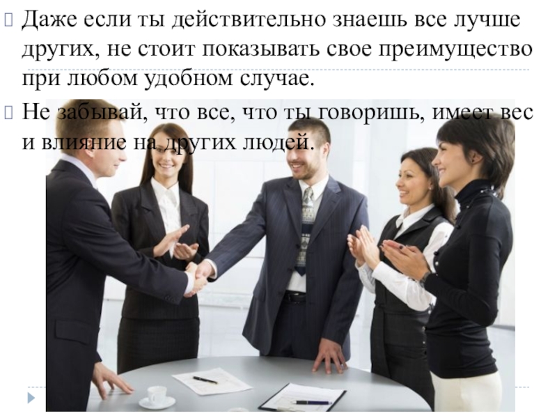 Слайд 26Даже если ты действительно знаешь все лучше других, не стоит показывать
