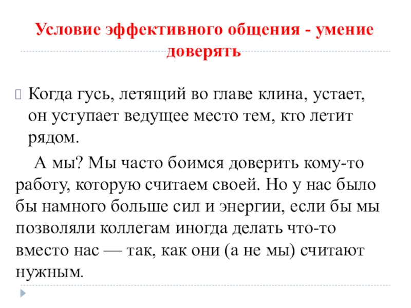 Слайд 12Условие эффективного общения - умение доверять