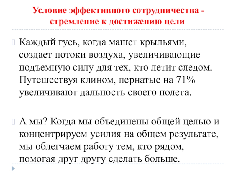 Слайд 6 Условие эффективного сотрудничества -стремление к достижению цели