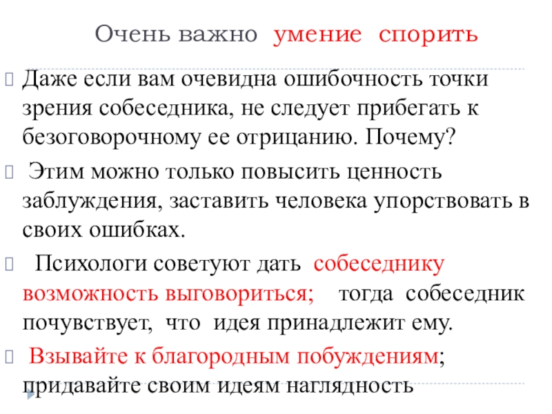 зрения собеседника, не следует прибегать к безоговорочному ее отрицанию. Почему?