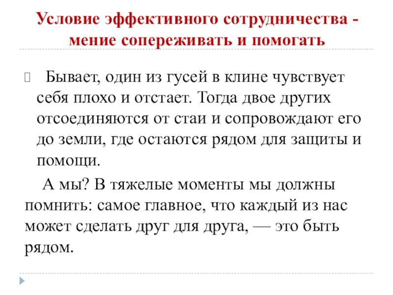 Слайд 8Условие эффективного сотрудничества - мение сопереживать и помогать