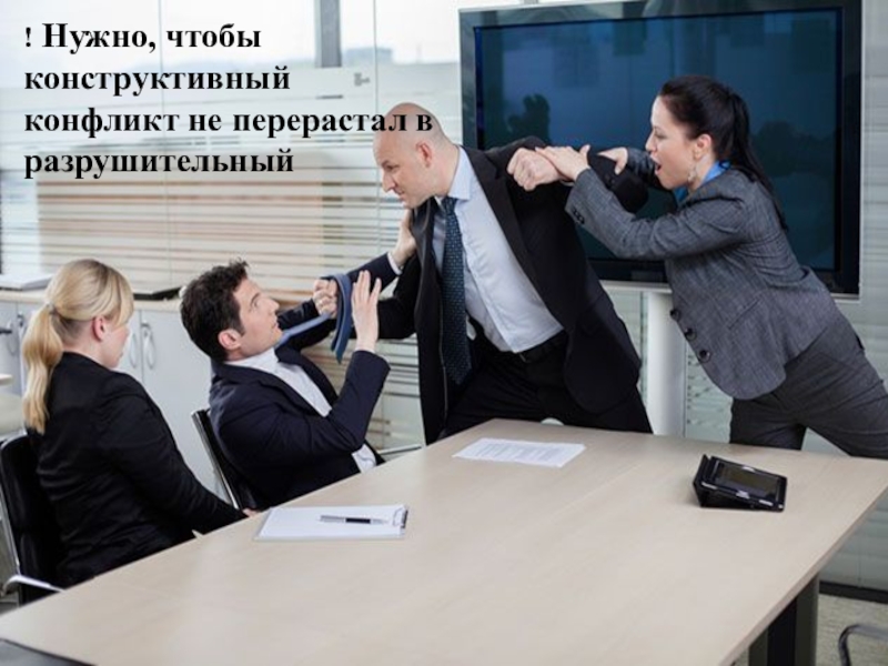 Слайд 23! Нужно, чтобы конструктивный конфликт не перерастал в разрушительный