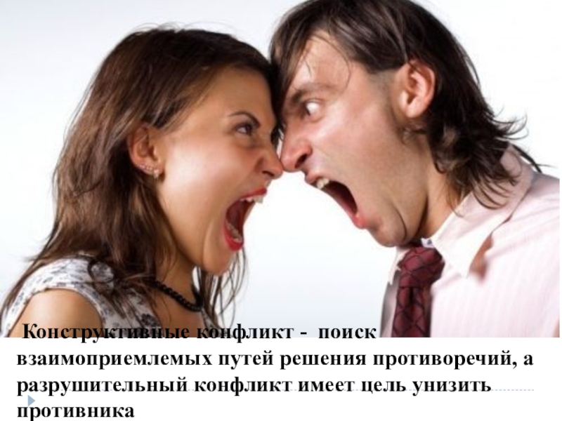 Слайд 24 Конструктивные конфликт - поиск взаимоприемлемых путей решения противоречий, а