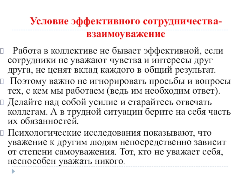 Условие эффективного сотрудничества-