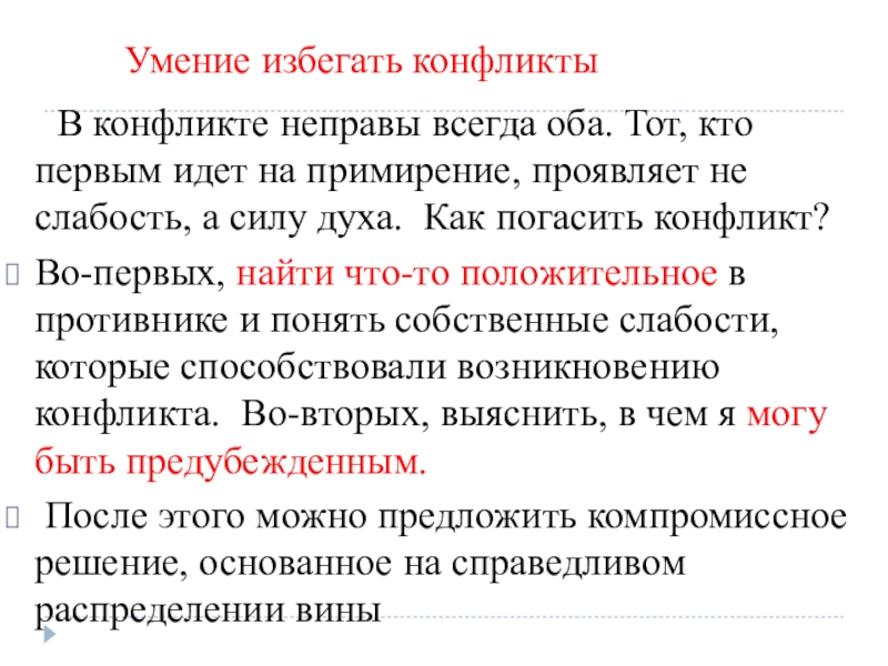 Слайд 20Умение избегать конфликты