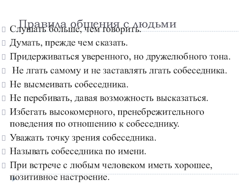 Слайд 28 Правила общения с людьми