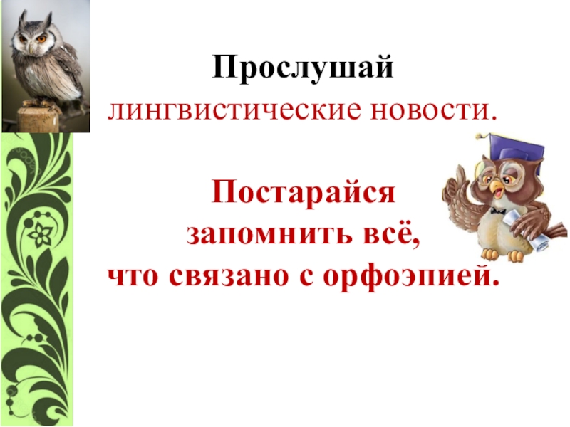 Орфоэпия от греч. orthos – прямой, правильный, epos – речь. Это совокупность правил нормативного литературного произношения.
