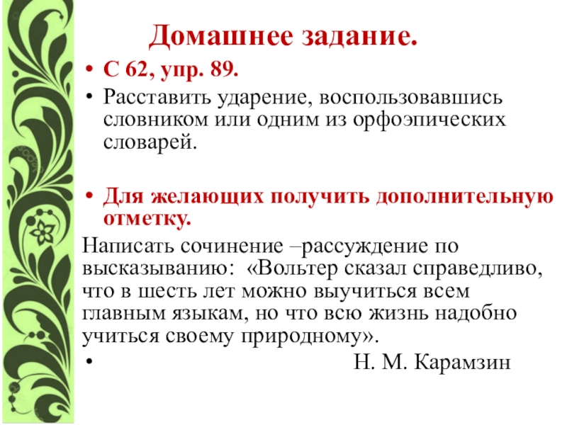 Раздел языкознания, изучающий правила русской орфоэпии и устанавливающий нормы произношения отдельных звуков и их сочетаний, а также нормы и правила постановки ударения (акцентология).
