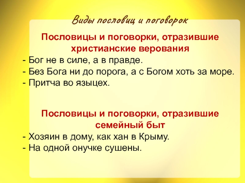 Виды пословиц и поговорок