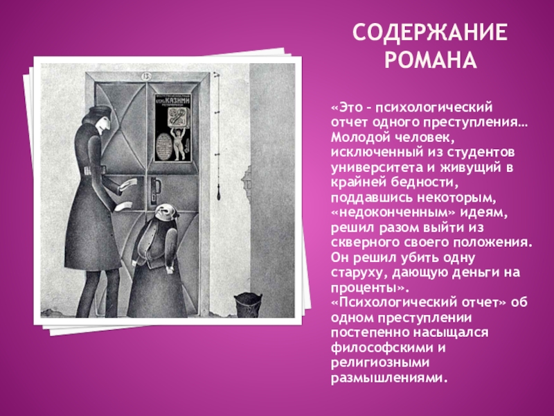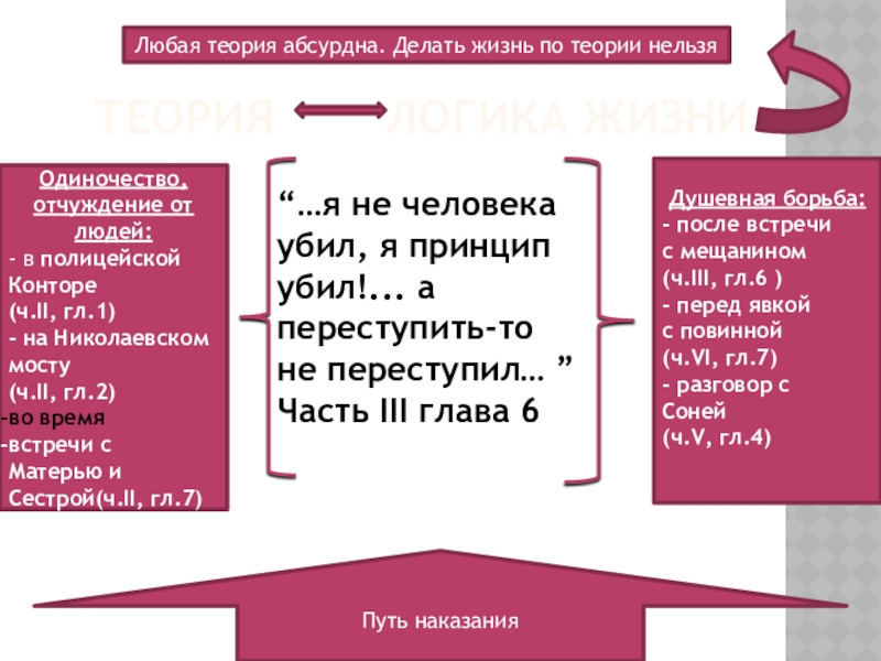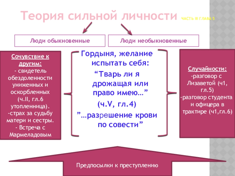 Желание проверить свою теорию, согласно которой сильные люди ради великой цели изменения несовершенного мира имеют право перешагнуть «через кровь» других людей